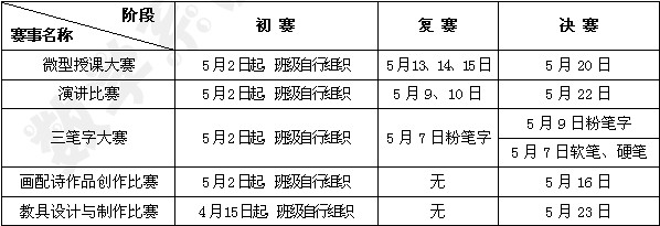 本次教育节,其主要活动包括微型授课大赛、演讲比赛、三笔字大赛、画配诗作品创作比赛、教具设计与制作比赛五种形式,涵盖了教师基本技能中的三笔字、普通话、简笔画技能和在教师技能岗位上所必需掌握的授课、说课、制作PPT多媒体课件、写教案、制作教具等能力。