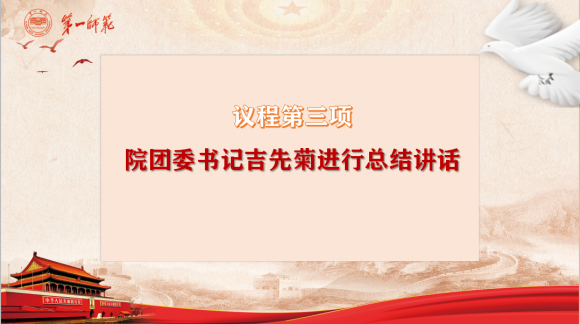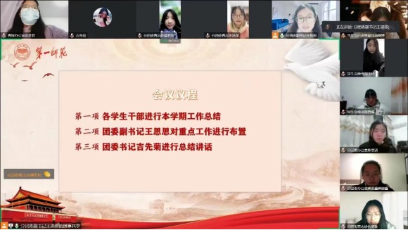 团委书记吉先菊、团委副书记王思思及全体团学青学生干部参与本次会议。会议由团委副书记王思思主持。