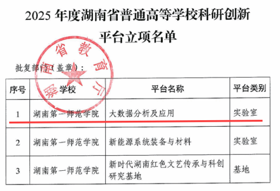 申报的“大数据分析及应用”实验室成功获批湖南省普通高等学校重点实验室。该实验室是学院近年来在“大数据与智能算法”领域开展有组织科研所取得的一项重要成果,实现了学院在省级科研创新平台方面取得的又一重大成果,标志着学院在学科建设上迈上了新的台阶。