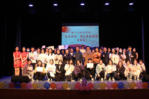在实验剧场举办“头脑风暴”一站到底决赛暨“数悉智远”第六届数学节闭幕式。学工部副部长成夏炎莅临现场,学院党委书记曾玉华、副书记李静、学工办主任马青梅、团总支书记张艳、学工办老师吉先菊、学院教师熊业波及学生代表参加。
