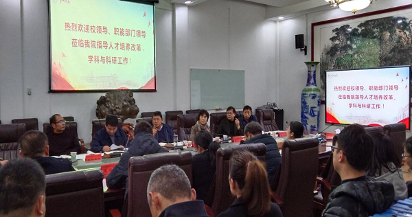 主持行政工作的副院长李雅湘汇报了学院“十三五”期间在师资队伍、学科专业、科学研究及人才培养改革等方面取得的主要成绩和存在的问题,以及“十四五”学院发展总体目标与建设规划。接着,学院党委书记曾玉华、副书记李静、副院长王增赟及教师代表围绕人才培养方案的优化、科学研究、教师发展、学生工作等内容提出了想法和建议。针对老师们提出的具体问题,调研组一行均给予了一一答复并给出建议。