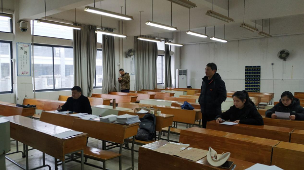 党委书记曾玉华,副院长李雅湘、王增赟亲临现场指导工作,协调处理后勤保障事宜,并为老师们送上御寒物品,考试工作有序进行。