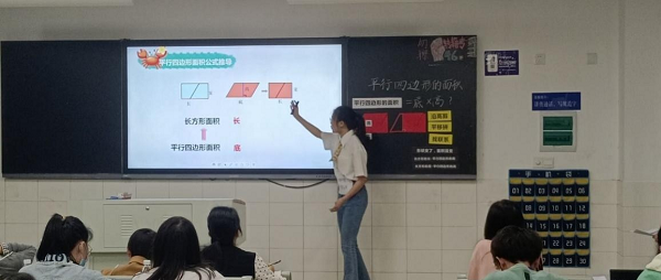 比赛期间,各位选手在台上尽情的展现了各自的授课特色与教学方式,精彩万分!如19级807班谷穗的《长方体的体积》内容丰富,层层推进,逻辑性强且教学重点突出。19级807班胡磊的《平行四边形的面积》课堂设计巧妙、生动有趣,课堂气氛活跃。