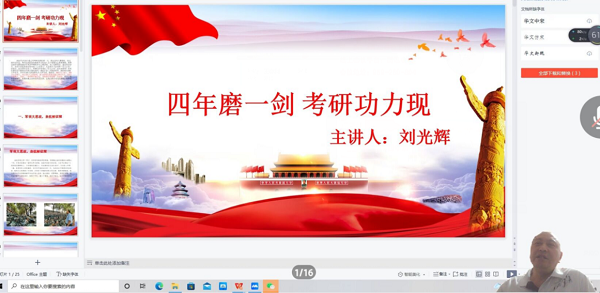 在东方红校区视频会议室举办了主题为“四年磨一剑、考研功力现”--考研规划介绍的专题讲座。特邀中南林业科技大学刘玉辉书记主讲。69堂