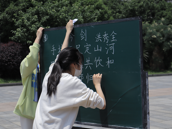“守教育初心·担育人使命第十届教育节开幕式暨粉笔字决赛于中轴广场成功举行。学院党委书记曾玉华、常务副院长李雅湘、党委副书记李静、副院长王增赟、学工办主任马青梅、团委书记吉先菊、学工办老师陈晓娇、康丽洁、毕倩、袁伟杰及学生代表,共计一百余人参与本次活动。