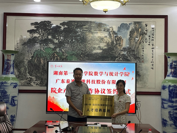最后,李雅湘代表学院与长沙泰迪智能科技有限公司签订了工作室合作框架协议和揭牌仪式。