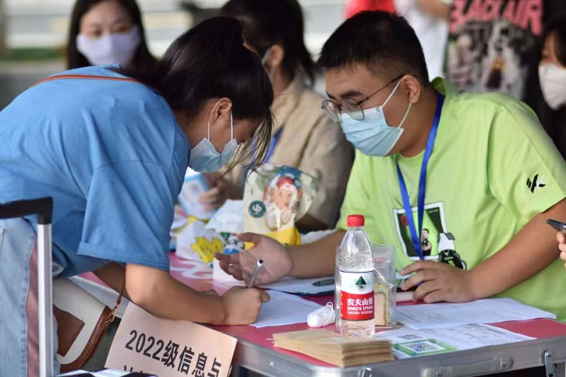 午后,骄阳似火。前来报到的新生陆续减少,但数统院的迎新工作人员仍热情不减,引导新生报道、搬运行李、带领新生就餐,他们毫不懈怠;从接机、接站、报道、入住等各个环节他们全天坚守在各自的岗位上,为迎新工作保驾护航,确保每一位新生顺利完成报到