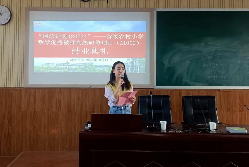 10月14日上午,湖南省省级农村小学数学优秀教师高级研修项目线下集中研修阶段圆满结束,阶段结业典礼在69堂
