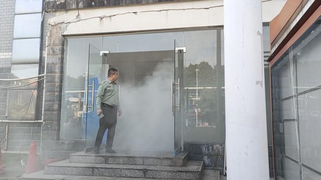 正式演练开始,随着烟雾弹的投放,警报声响起,学生们听从指挥,开始有条不紊的撤离。“掩住口鼻、弯腰前行、有序小跑……”工作人员一遍遍提醒,指引学生迅速到达安全地点。在到达指定地点后,相关负责人立即清点学生人数,进行情况汇总。整个逃生过程计时2分28秒。工作人员对本次消防演练进行了总结,对同学们的本次逃生速度进行了表扬。