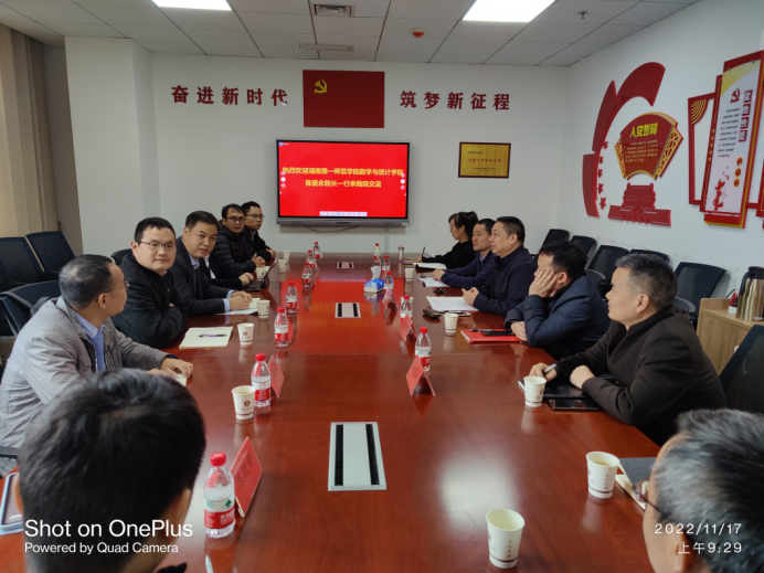 11月17日上午,学院副院长(主持工作)陈爱永、副书记李静、副院长王增赟一行7人赴湖南工商大学理学院进行调研交流。湖南工商大学理学院党委书记杨刚、院长谢小良等领导出席交流座谈会。