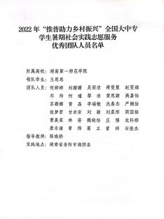 赴岳阳市湘阴县金龙镇‘数润星泽’推普助力乡村振兴服务队”荣获优秀团队称号!