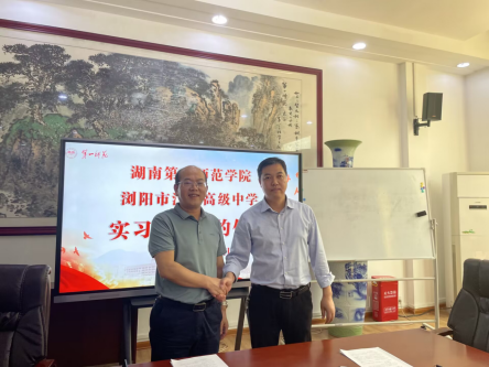 与浏阳市江湾高级中学实习基地签约仪式。学院全体党政领导、浏阳市江湾高级中学校长张仁武、副校长聂振兴、办公室主任李雅婷出席签约仪式。签约仪式由学院教学副院长王增赟教授主持。