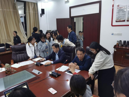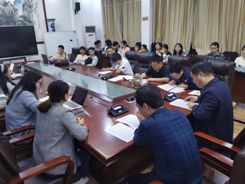 在院办一楼会议室召开考研志愿填报指导交流会。学院党委书记曾玉华、副院长(主持工作)陈爱永、副书记马青梅、副院长王增赟,考研指导教师张更容教授、王智刚教授、何孝凯副教授、邓海英老师及20级毕业班辅导员陈晓娇、彭晨嘉以及全体考研学生参加了此次交流会,会议由马青梅主持。