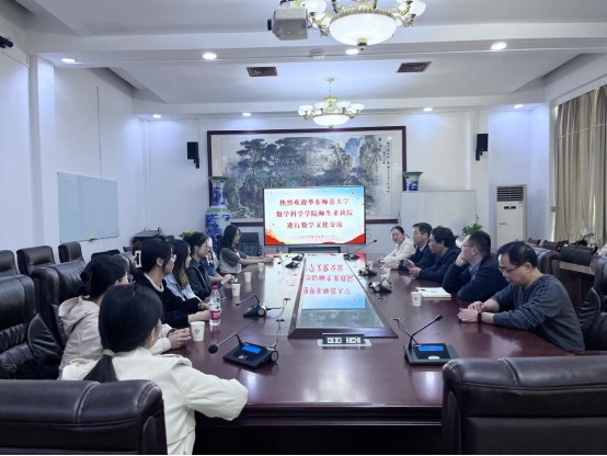 首先曾玉华对华东华东师范大学数学科学学院交流团的到来表示热烈欢迎。此次交流活动中的数学话剧是数学普及和文化传播的一种新形式,用话剧这样一种艺术形式,具象化地演绎数学,可以将数学生活化、艺术化、通俗化,可以使更多人走近数学、了解数学。
