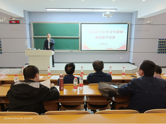 此次竞赛经过近一个月的筹划,在系(教研室)主任的大力宣传下,全院共19名青年教师积极报名参加。竞赛当天下午,赛前由学院院长陈爱永对参加本次赛事的老师提出了希望和要求,副院长杨旭光对赛事规则及流程进行讲解和要求。本赛事主要考察参赛教师的教学设计、教学课件、课堂教学、教学反思四个环节,参赛教师通过现场抓阄决定了参赛顺序,并在上台前抓阄决定讲课的内容,做到程序规范和公平、公正。