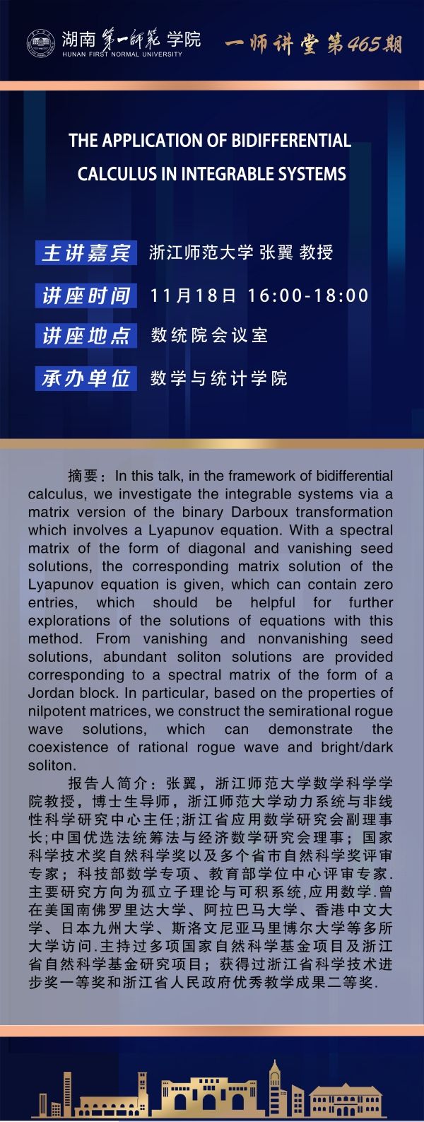 学术报告|数学高峰讲坛第78期:The application of bidifferential calculus in integrable systems 发布时间:2025-11-14 作者: 浏览次数:次