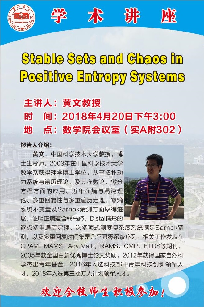 4月20日中国科学技术大学黄文教授到我校讲学