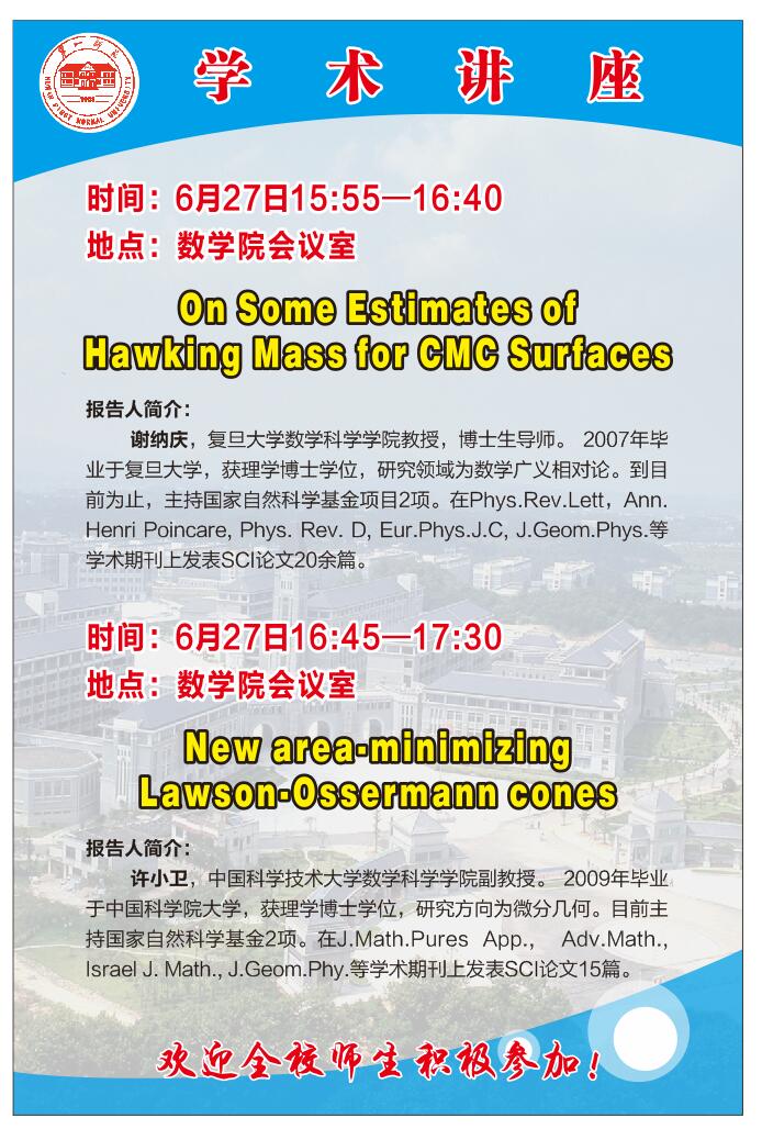 6月27日复旦大学谢纳庆教授、中国科学技术大学许小卫副教授到我校讲学