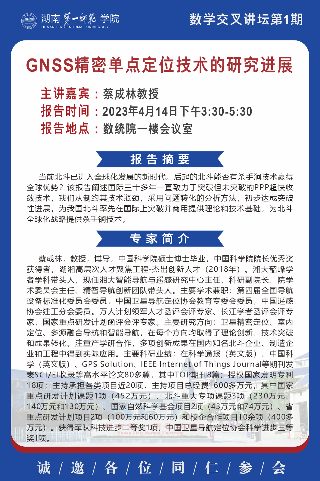 学术报告|数学交叉讲坛第1期:GNSS精密单点定位技术的研究进展