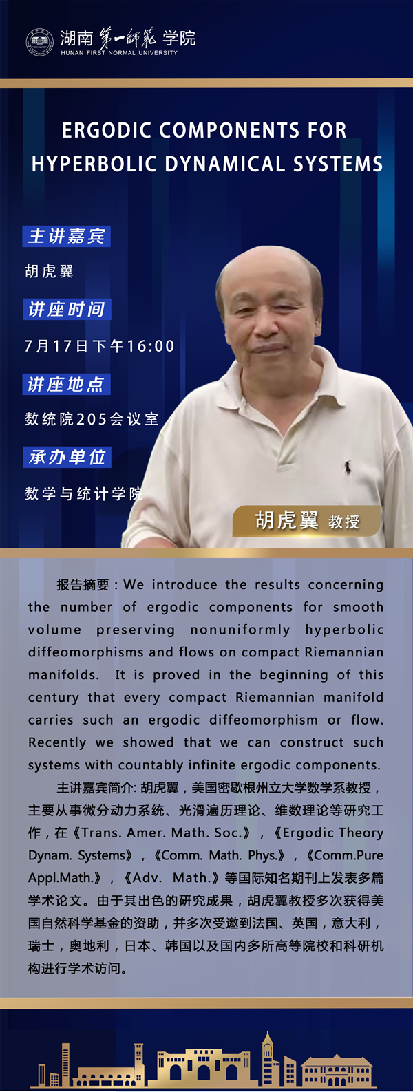 学术报告|数学高峰讲坛第44期:Ergodic Components for Hyperbolic Dynamical Systems