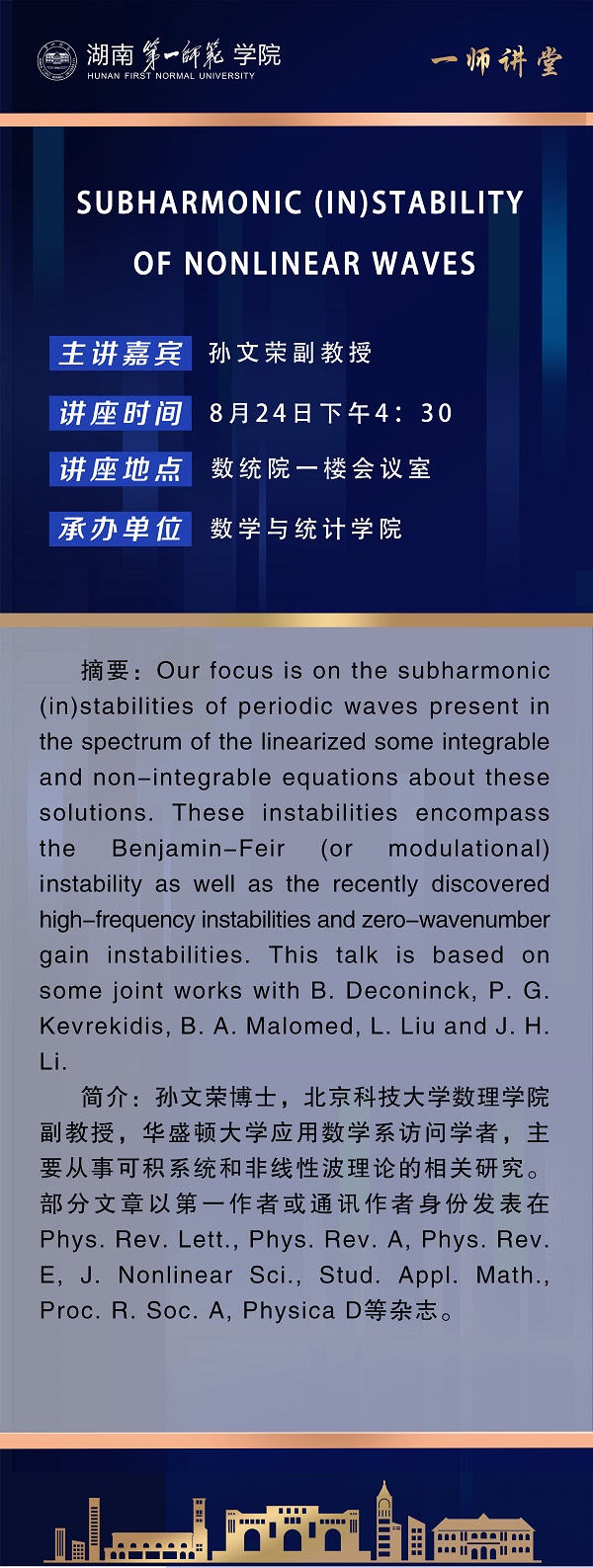 学术报告|数学高峰讲坛第48期:Subharmonic (in)stability of nonlinear waves