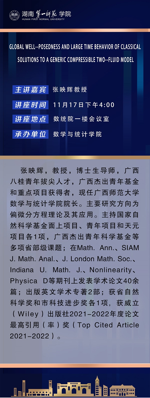 学术报告|数学高峰讲坛第50期:Global well--posedness and large time behavior of classical solutions to a generic compressible two--fluid model 发布时间:2024-11-15 作者: 浏览次数:次