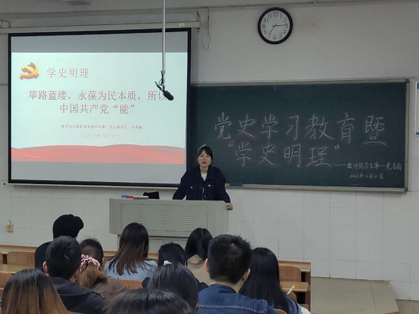 学生第一党支部在怀中南501召开党史学习教育暨“学史明理”专题学习,支部书记马青梅老师和全体学生党员参加此次活动。