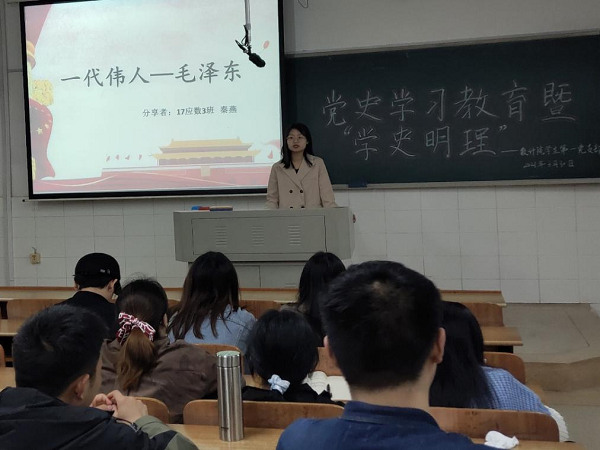 随后全体学生党员一起观看党史学习教育视频“五四运动中青年如何救中国”,“我党建立时,建党人年岁几何”。学生党员洪静、朱瑾、秦燕三位同志通过讲红色故事,分享了我校伟大校友毛泽东、蔡和森、任弼时的革命先烈事迹。