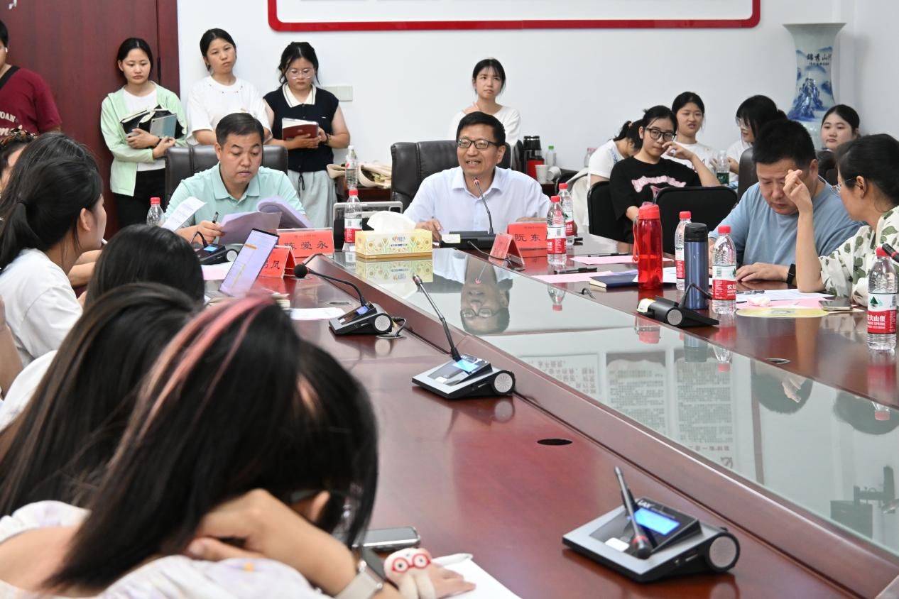 于10月9日与10月17日下午,在学院会议室分两轮组织召开了考研志愿填报指导交流会,会议采用线上线下相结合的方式。会议由学院党委副书记申鸣凤主持。学院党委书记阮东彪、院长陈爱永、副院长王增赟以及考研指导教师张更容、邓海英、潘超红、颜斌受邀出席,考研专干彭晨嘉及全体考研学生共同参与。