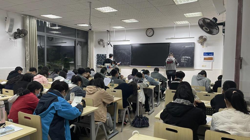 学风建设 | 聚焦考前复习、抓实考风建设 发布时间:2022-04-15 作者: 浏览次数:次 明亮的教室,翻动的书页,跃动的笔尖,专注的眼神。 4月15日晚7点,69堂 李静副书记与辅导员袁伟杰来到润寰楼,对数统院中职班晚自习情况进行巡查。李静书记与同学们进行了交流,对同学们能够认真投入到考试复习中的状态表示肯定。并叮嘱大家要合理安排好自己的学习计划,注意劳逸结合,争取把自己最好的一面在考试中展示出来。