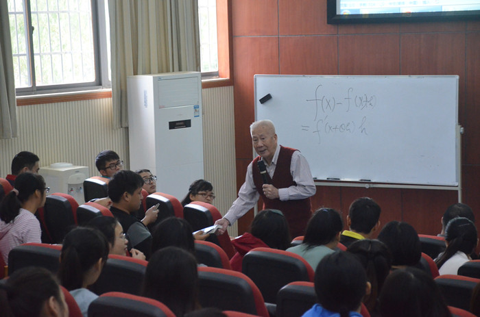 25日上午,召开了数学教育教学座谈会。林群院士与到会师生进一步阐述了自己最新的教学方法,并对我校数计院今后教育教学的发展提出了宝贵的建议。与会人员表示,林群院士的教学方法拓展了眼界,值得广大师生进一步深入理解思考。下午,林群院士到城南书院与部分学生进行了座谈,城南书院院长张尚晏等出席了座谈会。林群院士不仅讲解了微积分小卡片,还亲切询问了同学们的学习、生活情况,用自己学术生涯中的经历和体会,鼓励同学们努力学好专业知识,扩大知识面、打好基础,成为国家需要的人才。