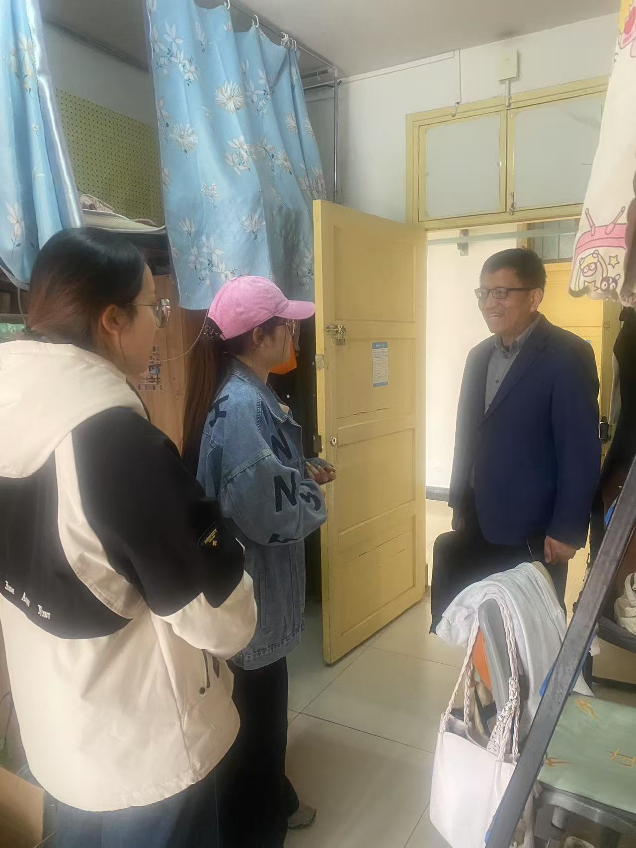 书记下寝 | 春日关怀暖人心,考研规划引方向 发布时间:2025-04-03 作者: 浏览次数:次 4月3日上午,69堂 党委书记阮东彪带领辅导员走访4栋学生宿舍,在走访过程中,阮书记与同学们进行亲切交流,详细询问了大家的学习进展、作息习惯及生活需求,特别叮嘱同学们要注意春季传染病的预防,同时,积极勉励同学们勤奋学习,做好考研规划,为今后更好地适应社会打好坚实基础。