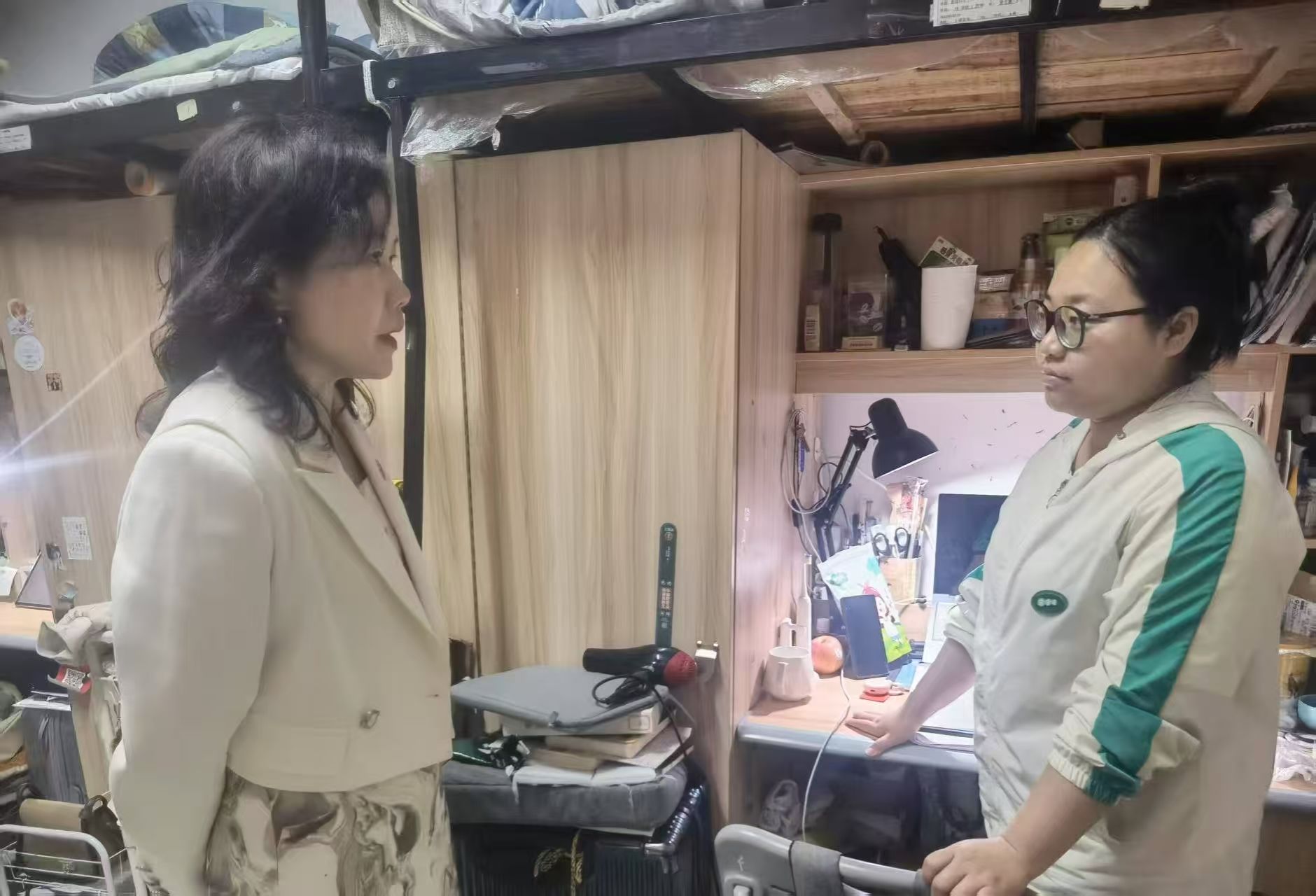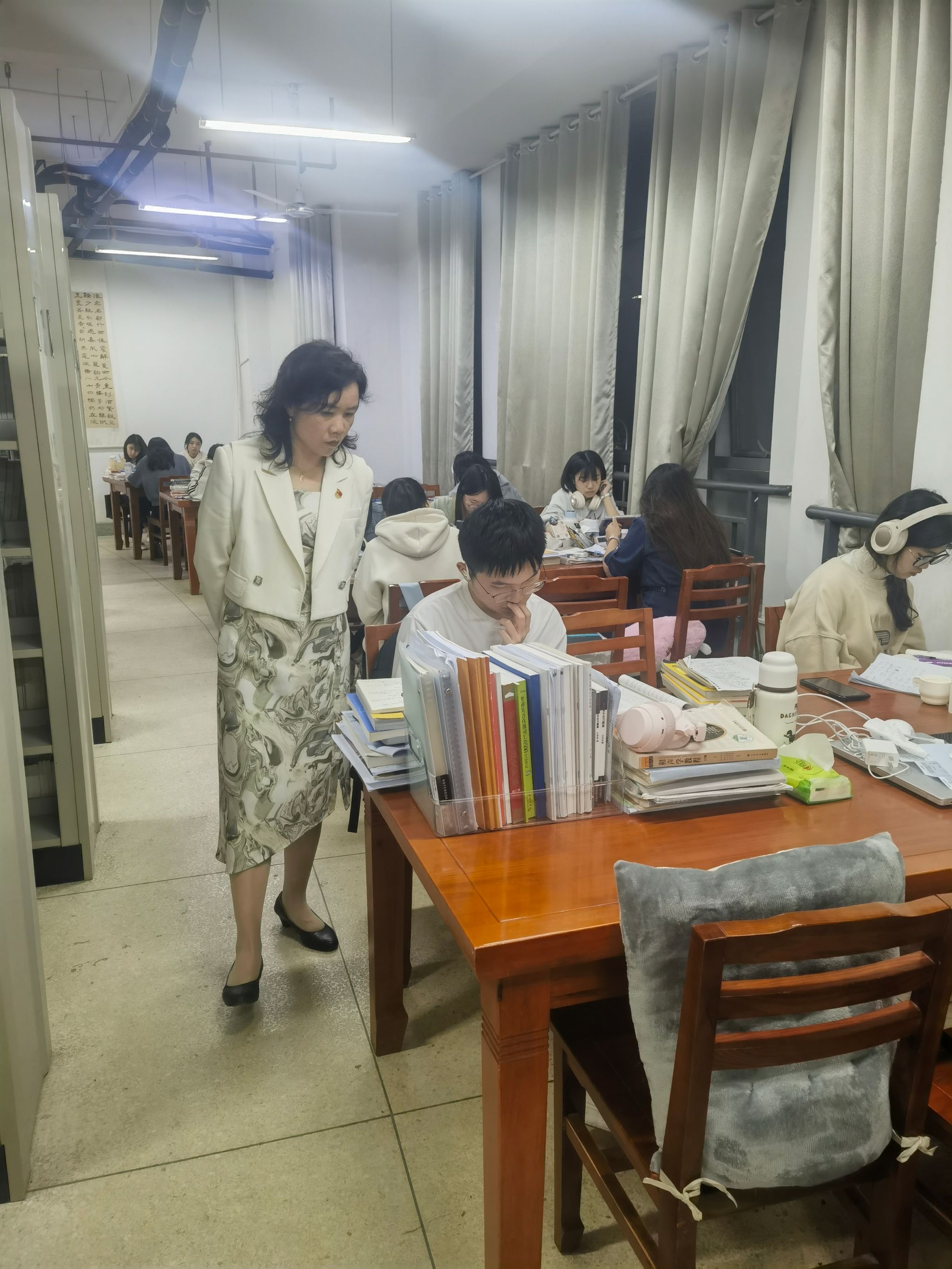 书记下寝 | 暖心关怀促备考,殷切嘱托寄希望 发布时间:2025-04-07 作者: 浏览次数:次 4月7日晚,69堂 党委副书记申鸣凤带领辅导员走访学生公寓并看望在图书馆自习考研的同学。走访学生公寓时,学生在寝室认真自习,备考公务员、研究生考试,申书记跟学生进行了深入细致沟通,指导学生科学备考,合理选择目标,科学规划,祝福同学们早日上岸。同时勉励学生劳逸结合,适当运动,强健体魄才能更好地投入学习,对同学们在宿舍仍能保持专注学习的状态提出了表扬,希望同学们继续保持!