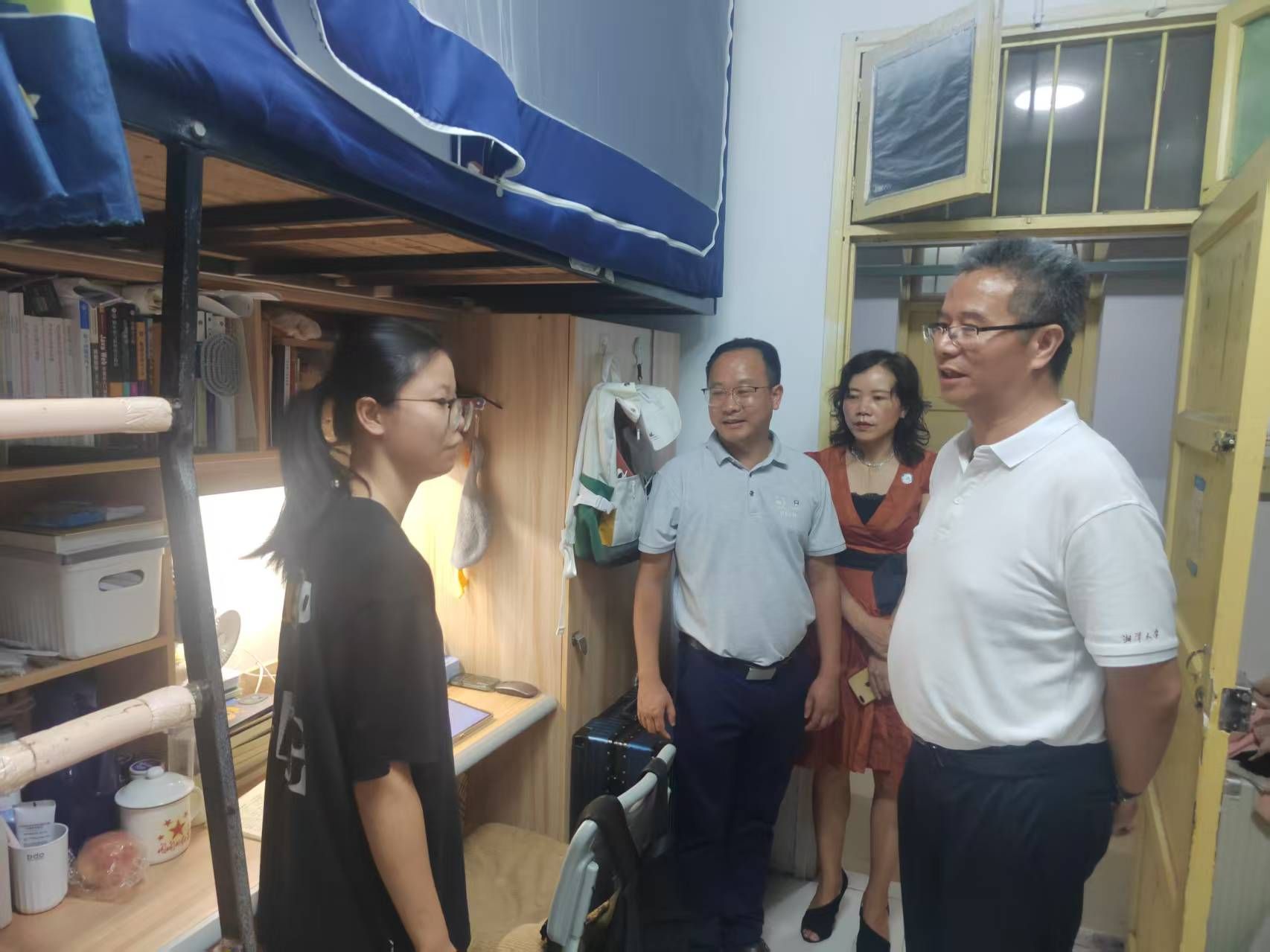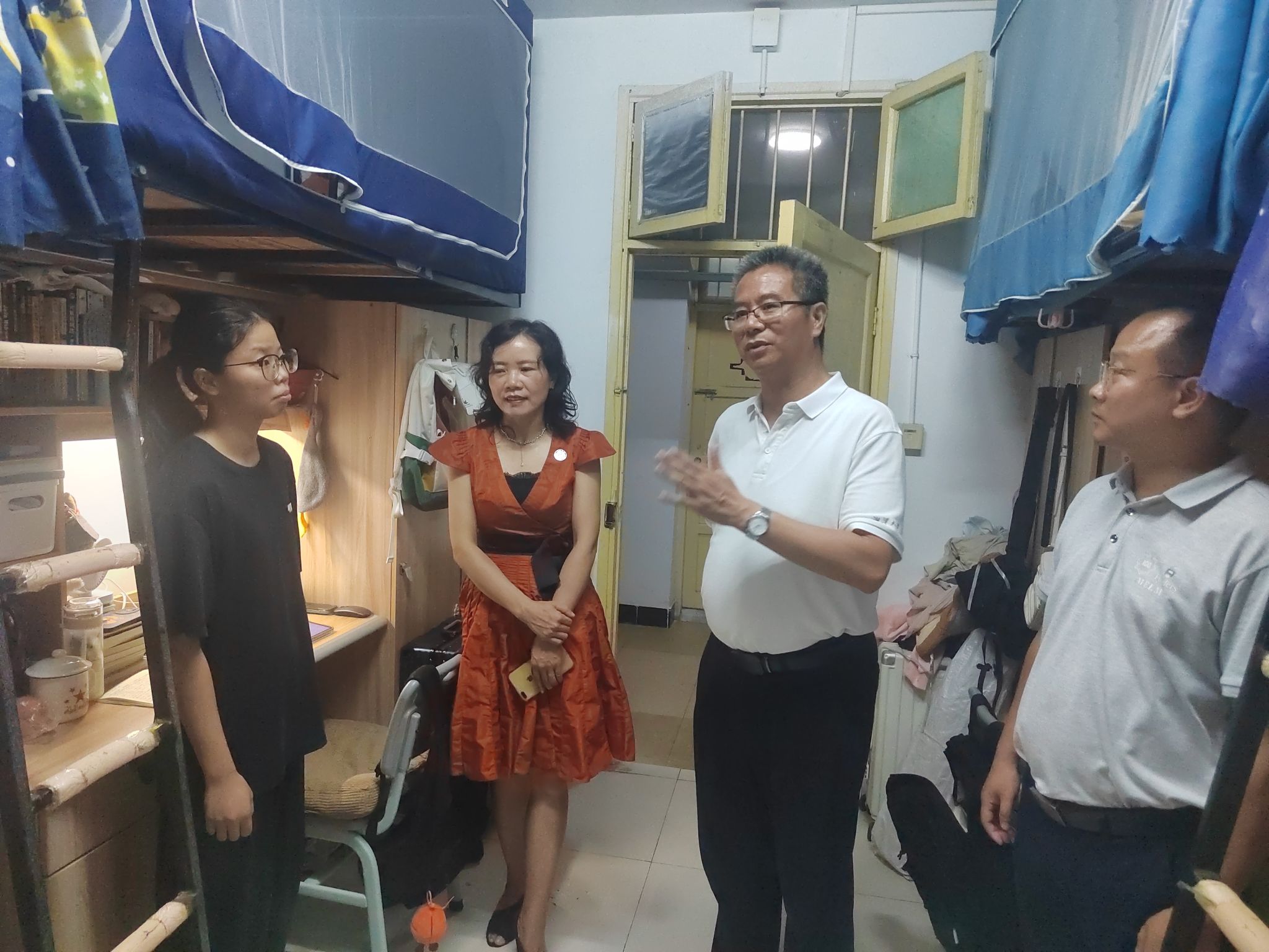 党委副书记申鸣凤、学工办副主任毕倩等陪同下,深入学思苑学生社区开展走访调研。一行人先后走进学生寝室和考研自习室,与同学们亲切交谈,详细了解大家的日常生活、学习状态及备考情况。