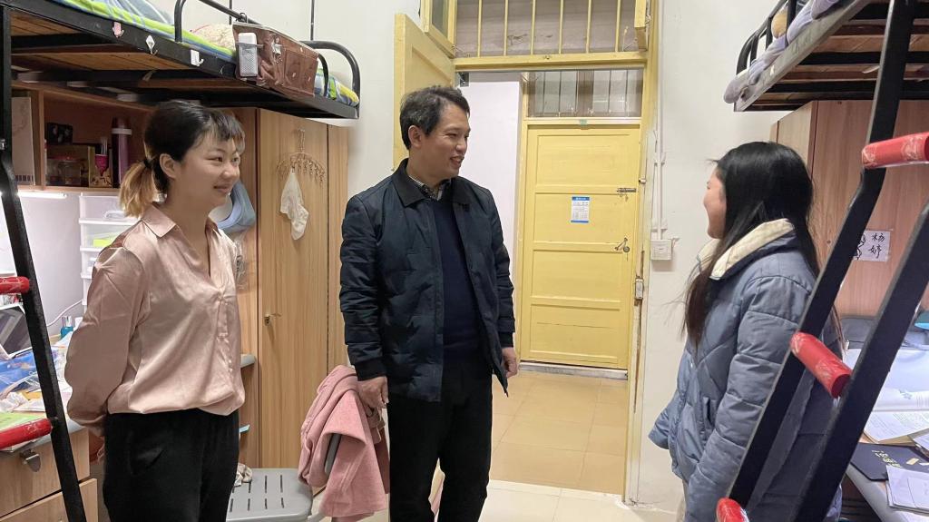 书记下寝 | 把握就业黄金期、弘扬数统拼搏魂 发布时间:2022-03-31 作者: 浏览次数:次 3月31日晚,69堂 曾玉华书记,学科建设与发展规划处欧阳章东处长,数统院学工办主任马青梅、辅导员袁伟杰一行来到围墙边,看望慰问正在值守的党员同学,叮嘱大家天气转凉注意保暖,同时表扬大家疫情特殊时期顽强坚守的精神。 随后,书记一行人来到了数统院毕业生寝室,询问大家目前的就业情况。并鼓励大家,在择业的黄金时期要打开思路,多努力多尝试。发挥一师数统学子的拼搏精神,相信大家都能找到自己满意的岗位。