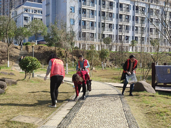 女老师们参加本次活动。活动以学习雷锋精神为主题,高呼“环卫工作人人参与,美好环境人人受益”的口号,以党支部为单位分成三支队伍,各组教师代表领取环境清理所需的垃圾袋及钳子等工具,分别前往办公楼前后、五口塘区域、球场等不同地点进行环境清理,半个小时过去了,老师们手持的垃圾袋里已装满捡拾起来的烟头、纸屑等杂物,可谓“收获满满”。