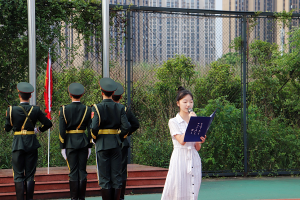 仪式结束,18级775数学班何梦倩进行国旗下的演讲。她以“传承红色基因,逐梦星辰大海”为主题,回忆中国共产党最艰难的革命历程,呼吁在场青年学子从党的光辉历史中吸取力量,担负起新时代青年应有的责任和担当,锤炼品德、勇于创新、实学实干,坚定不移传承红色基因,弘扬革命精神,为中华民族伟大复兴贡献青春力量。