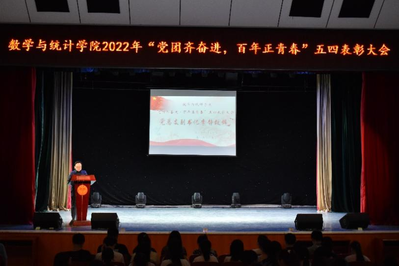 2021—2022学年“党团齐奋进,百年正青春”五四表彰大会于实验剧场隆重举行。学院党委副书记李静、学工办主任马青梅、学工办老师毕倩、袁伟杰、康丽洁、熊业波、邱相炎、肖聪、程兰及学生代表,共计两百余人参与本次活动。