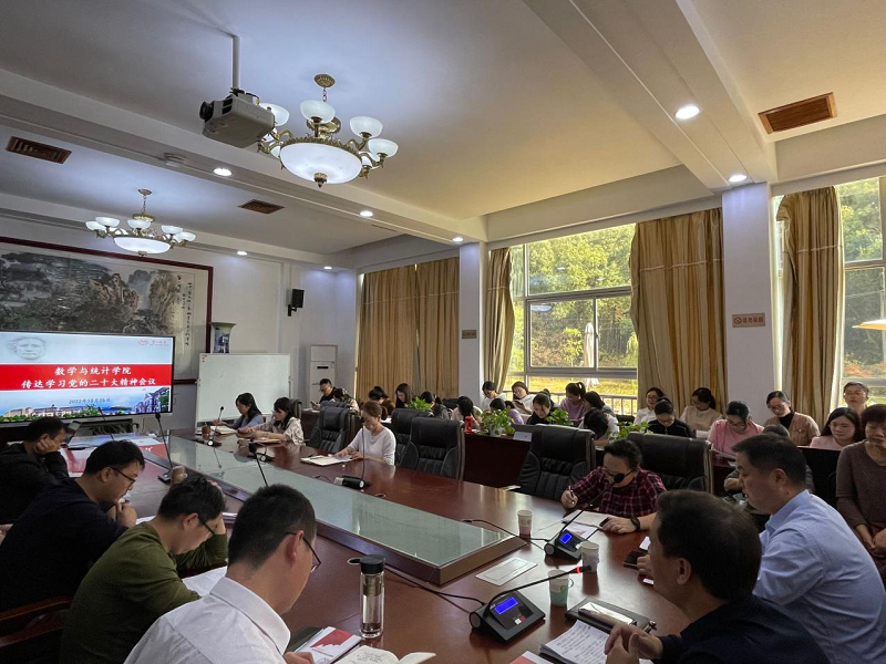 在学院办公楼108会议室召开传达学习党的二十大报告精神会议。学院党委书记曾玉华、副院长(主持工作)陈爱永、党委副书记李静、副院长王增赟及全院教师参会,会议由曾玉华主持。