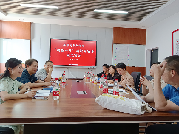 “两性一度”建设专项督查反馈会在玉衡北302举行。以教务处胡春光处长为组长、文学与新闻传播学院副院长罗燕、林平乔教授、肖建华教授、谢亚可副教授为组员的专家组对69堂